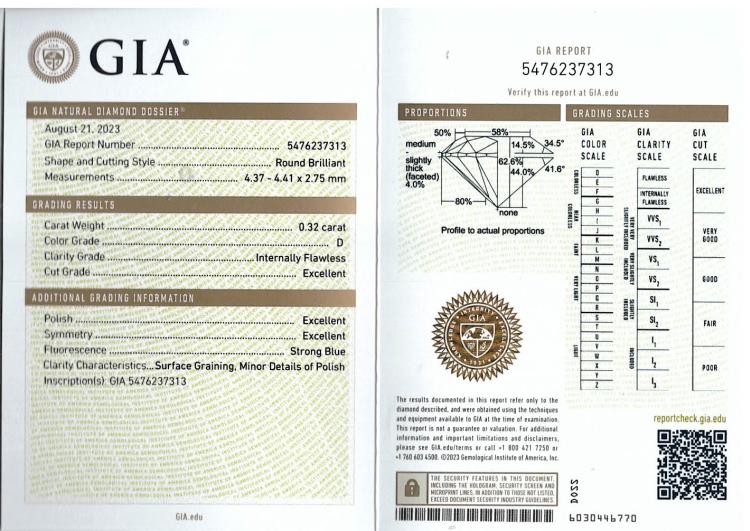 0.64ct Diamonds Studs GIA D IF