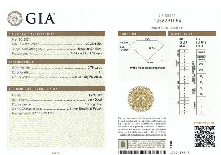 A loose marquise cut Natural Diamond of 0.70ct (with GIA report graded as E Internally Flawless #1236291054