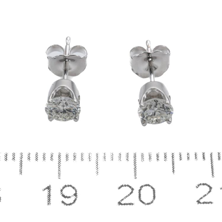 Diamond stud earrings with 2 round brilliant cut Natural Diamonds totalling 0.81ct (Estimated grading: H-I SI2-P1). 18ct white gold. Weight: 1.2g. (New)