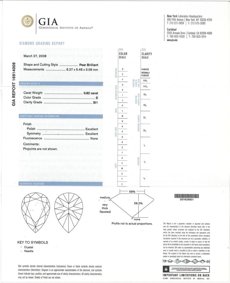 0.82ct Pear Diamond Pendant GIA D