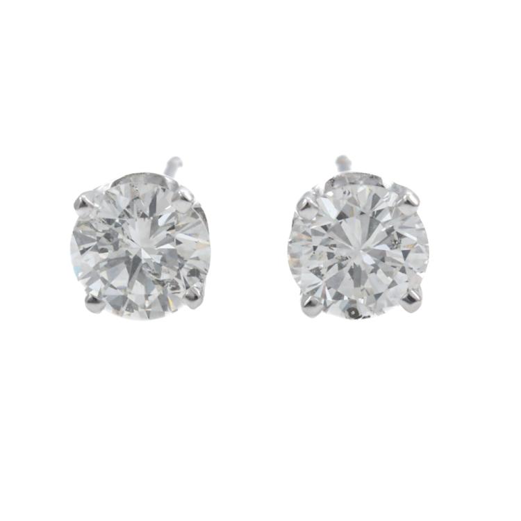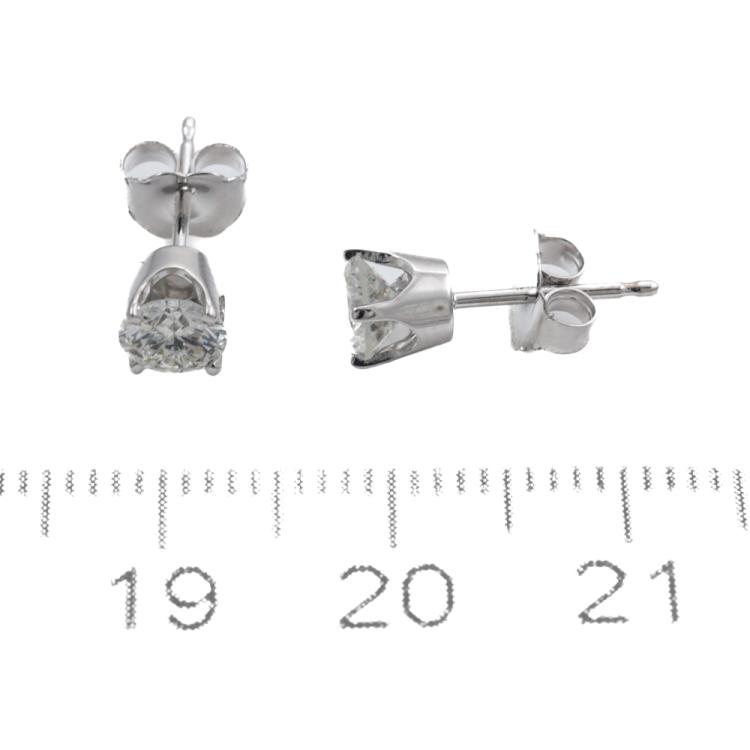 Diamond stud earrings with 2 round brilliant cut natural Diamonds totalling 0.93ct (Estimated grading: H-I P1). 18ct white gold. Weight: 1.1g. (New)