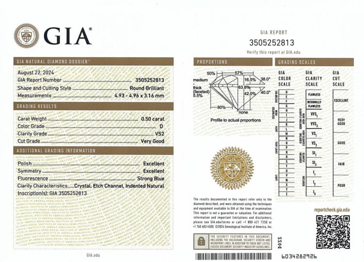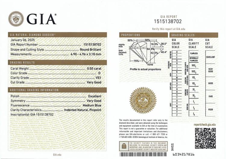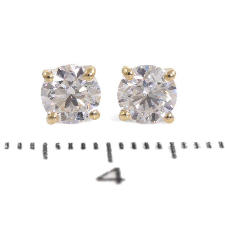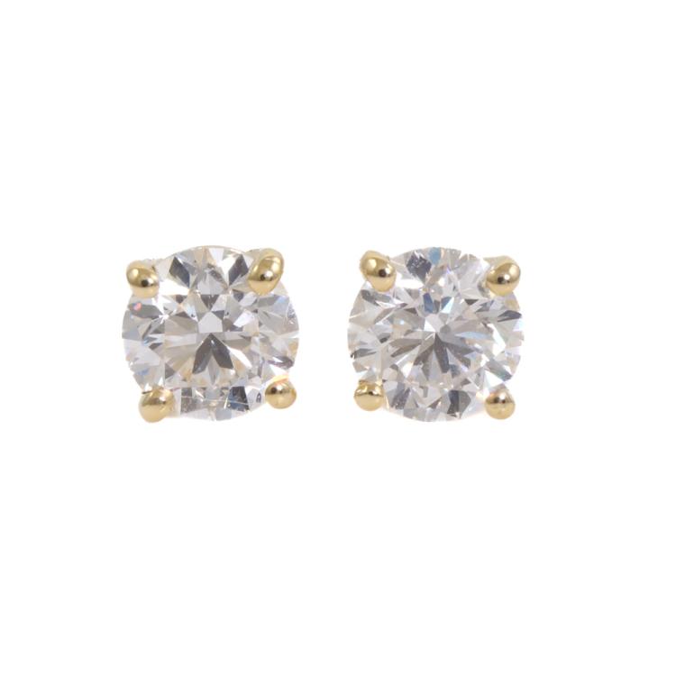 Diamond stud earrings with 2 round brilliant cut Natural Diamonds totalling 1.00ct (with GIA Dossier Reports graded as D VS1 #151538702, D VS2 #3505252813). 18ct yellow gold. Weight: 1.1g. (New)