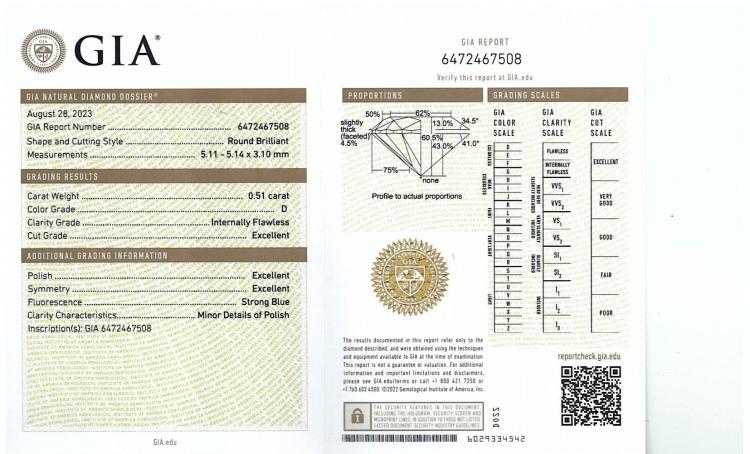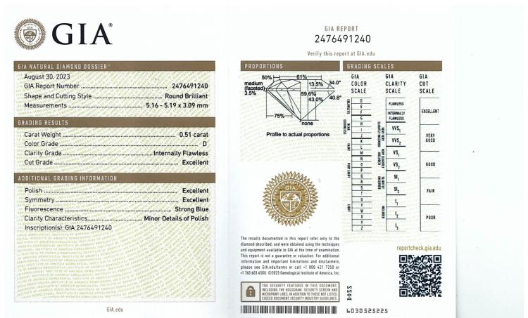 Diamond Studs with 2 Round brilliant cut Natural Diamonds totalling 1.02ct (both with GIA summary reports both graded as D Internally Flawless #6472467508, 2476491240). 18ct white gold. Weight 1.1g (New)