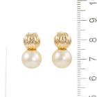 Pearl and Diamond screwback earrings with 2 South Sea Pearl of 10.2mm and round Natural Diamonds totalling 0.12ct. 18ct yellow gold. Weight: 7.1g. (Pre-owned)