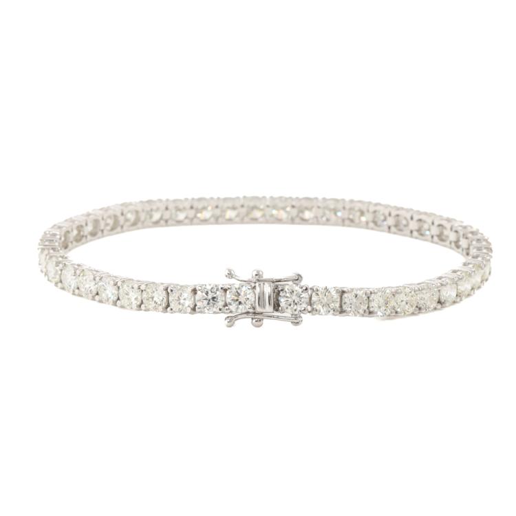 Diamond tennis bracelet with 44 round Natural Diamonds totalling 10.93ct (Estimated grading: I-J SI). 18ct white gold. Length: 18cm. Weight: 13.4g. With Valuation Certificate #420061. (New)