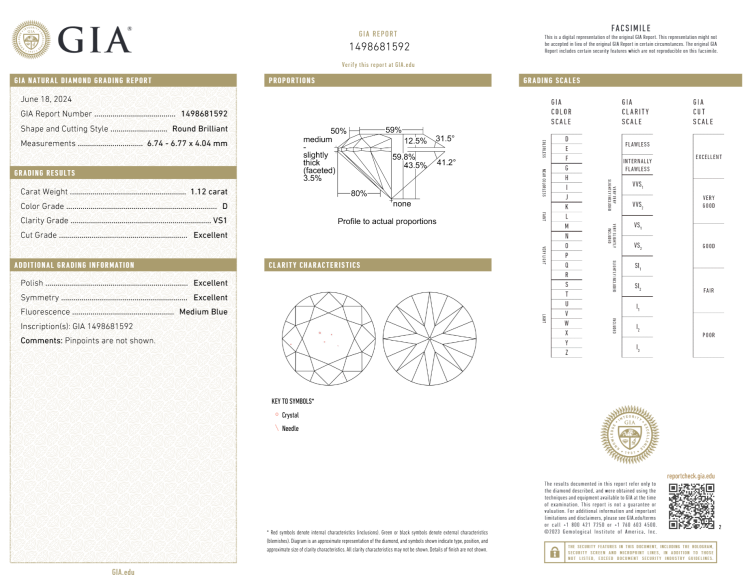 A loose round brilliant cut Natural Diamond of 1.12ct (with GIA report graded as D VS1#1498681592