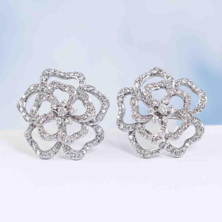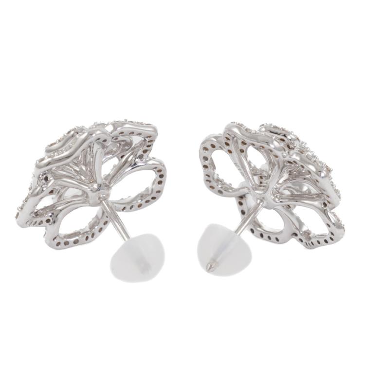 Diamond Flower design earrings with round natural Diamonds totalling 1.16ct (Estimated grading G-H SI). 18ct white gold with silicon backs. Weight: 7.5g. (Pre-owned)