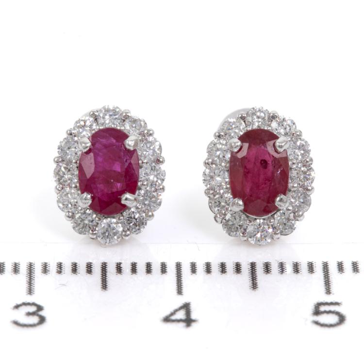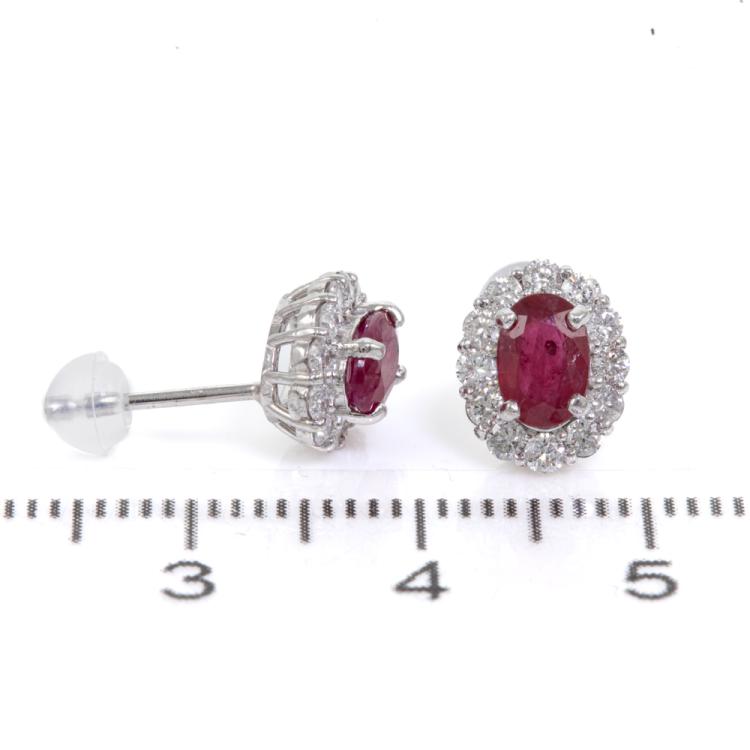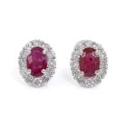Ruby and Diamond earrings with oval shape natural Rubies totalling 1.18cts and round natural Diamonds totalling 0.56cts (Estimated grading: G-H SI-P2). Platinum 900 with silicon backs. Weight: 2.7g. (Pre-owned)