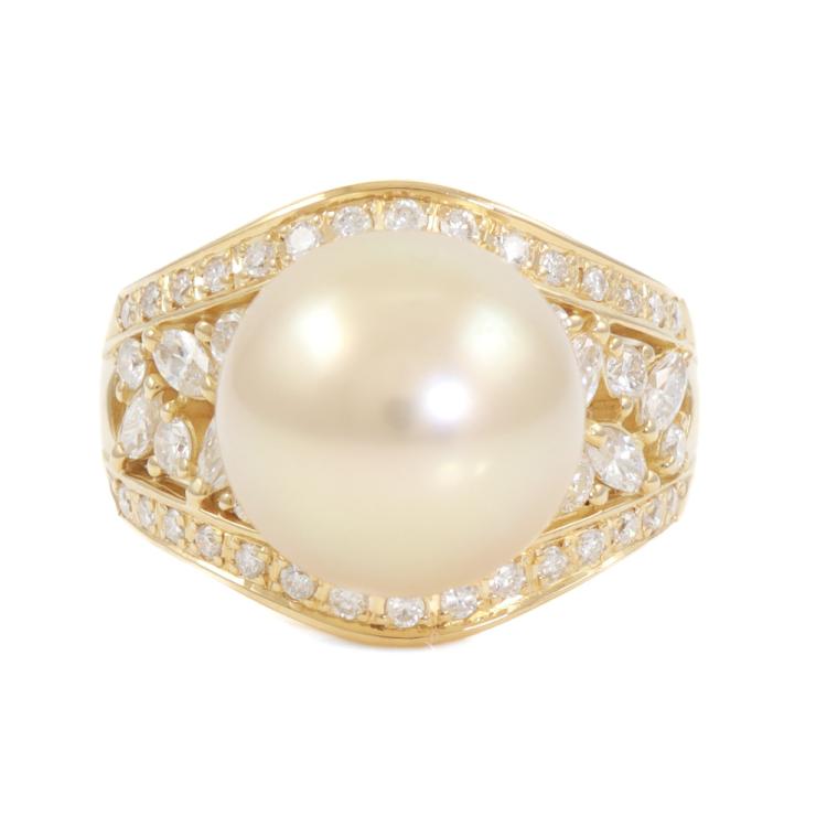 12.0mm South Sea Peal & Diamond Ring