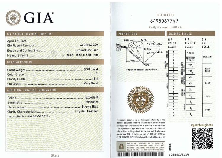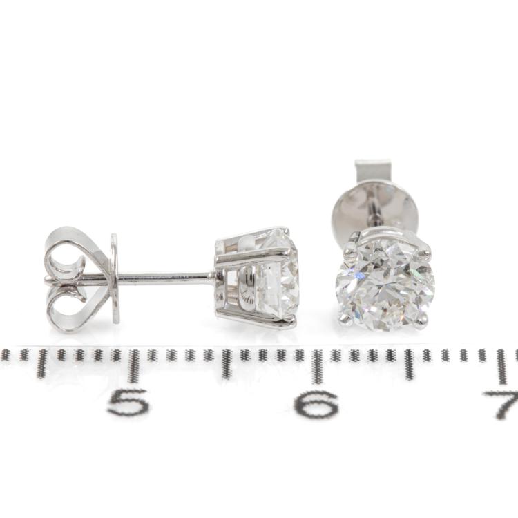 Diamond stud earrings with 2 round brilliant cut Natural Diamonds totalling 1.40cts (with GIA Summary Reports graded as D SI1 & E SI1 #1483527969, 6495067749). 18ct white gold. Weight: 1.4g. (New)