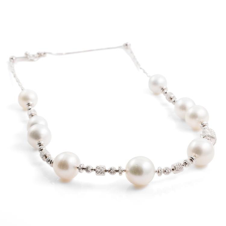Pearl necklace with 9 South Sea Pearl of 14.1mm - 10.9mm. 18ct white gold. Length: 44.5cm. Weight: 33.9g. (Pre-owned)