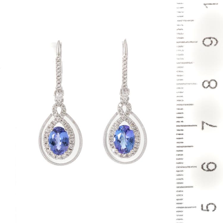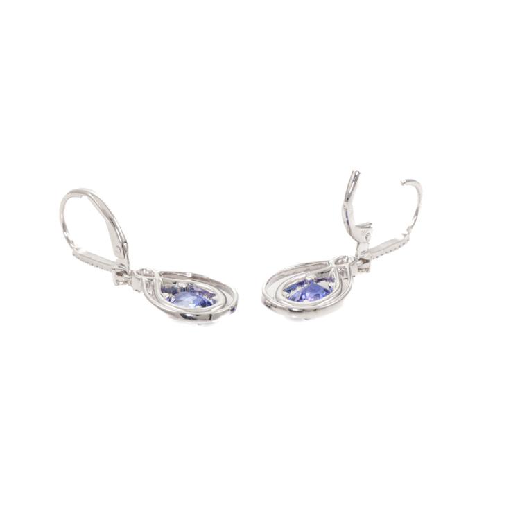 Tanzanite and Diamond lever back earrings with oval shape Natural Tanzanite totalling 1.59ct and Natural Diamonds totalling 0.46ct (Estimated grading: I-J SI). 18ct white gold. Weight: 3.7g. (New)