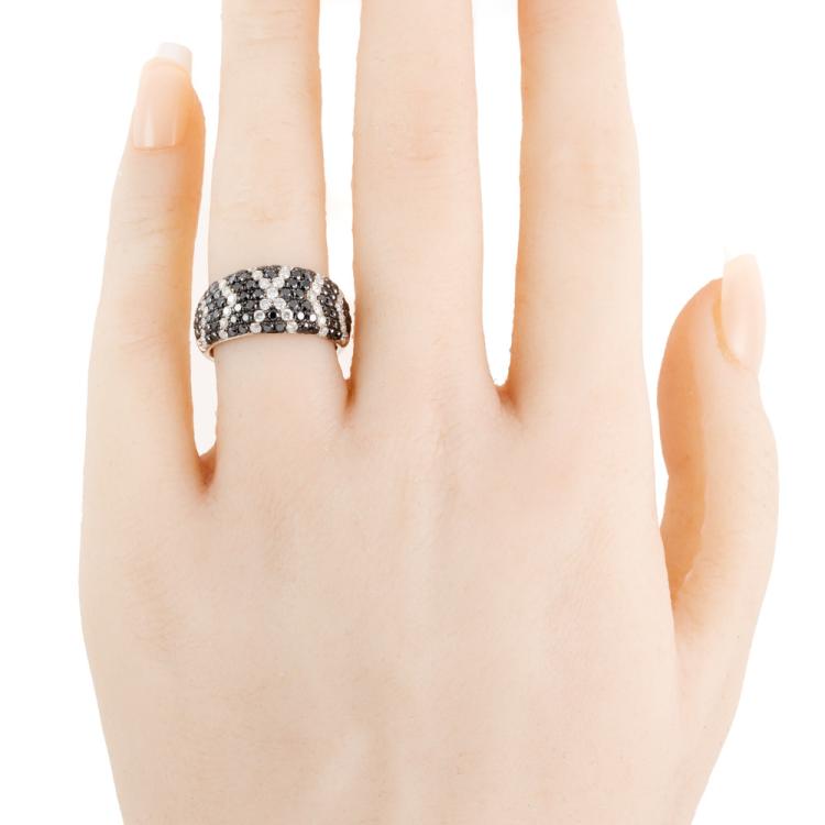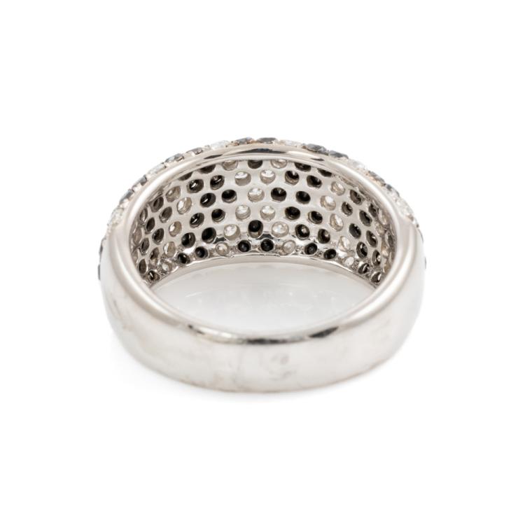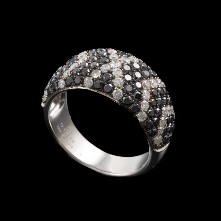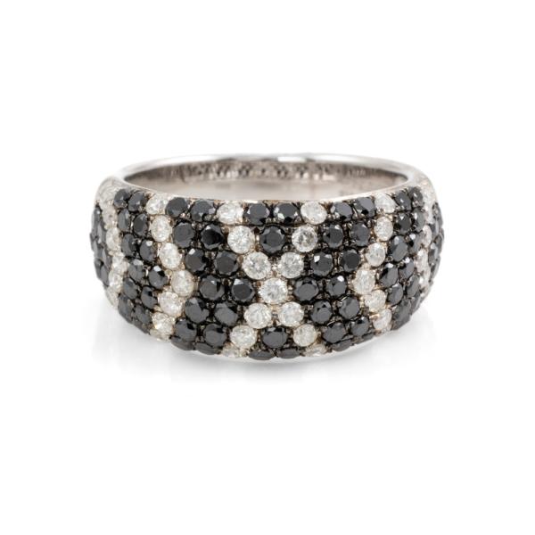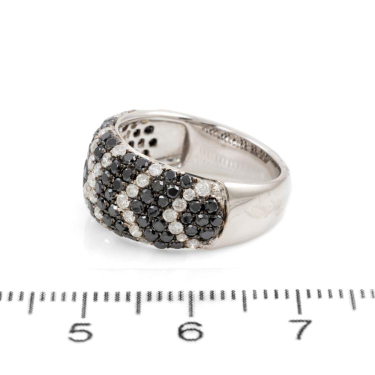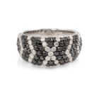Diamond Ring with round black Natural Diamonds (colour may be treated) totalling 1.18cts and round white natural Diamonds totalling 0.54cts (Estimated grading: H P1). 14ct white gold. Ring size: K1/2. Weight: 5.1g (As New)^
