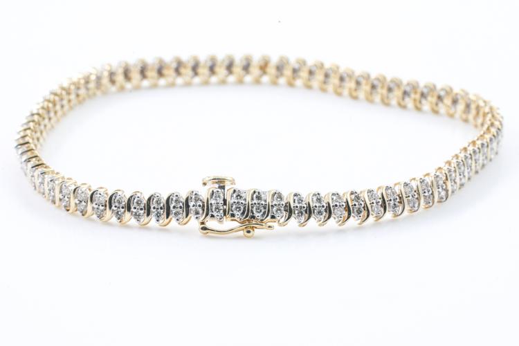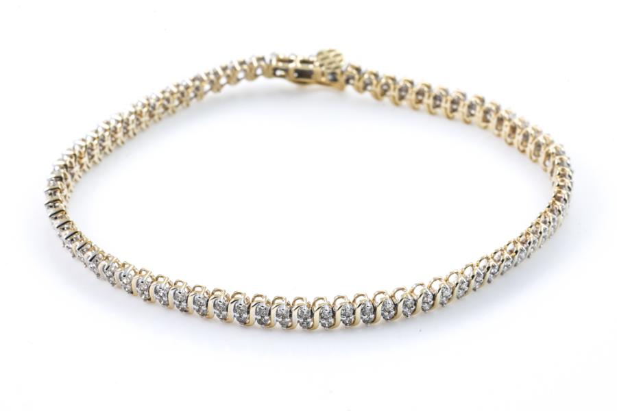 Diamond bracelet with 144 round diamonds totalling 1.75ct (Estimated grading: H SI). 14ct yellow gold. Length: 19cm. Weight: 10.7g. (New)