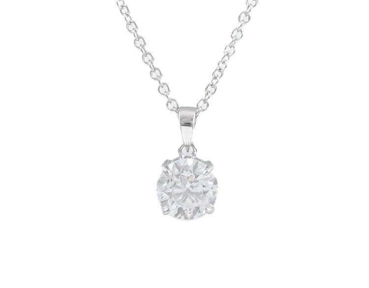 Diamond solitaire pendant with round brilliant cut Natural Diamond of 2.00ct (with GSL Report graded as G P1 #AA70081/4). 18ct white gold with 44.5cm 18ct white gold chain. Weight: 4.1g. (New)