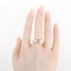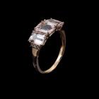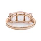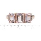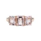 Morganite and Diamond ring with three emerald cut Natural Morganites totalling 2.20ct and round Natural Diamonds totalling 0.09ct. 18ct rose gold. Rings size P. Band width: 3.7mm x 2.0mm. Weight: 3.2g. (Pre-owned)