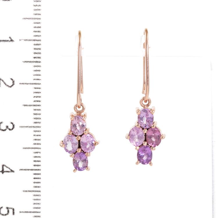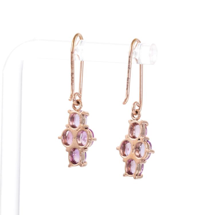 Sapphire shepherds hook earrings with oval shape unheated Ceylon natural pink Sapphires totalling 2.57ct. 14ct rose gold. Weight: 2.8g. With GGTL Report #206182. (As new)