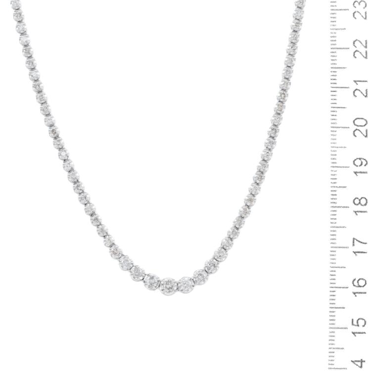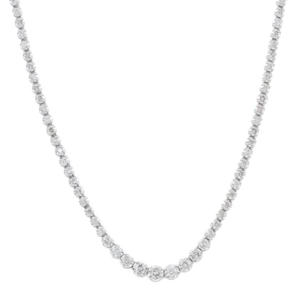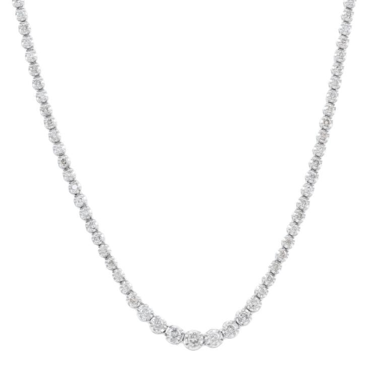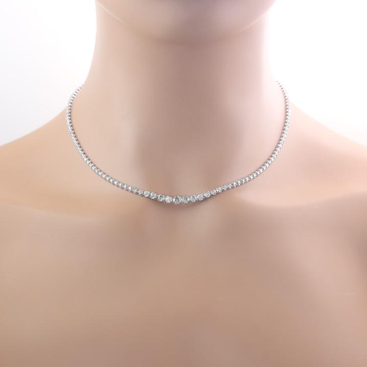 Diamond tennis necklace with slightly graduated 133 round Natural Diamonds totalling 3.00ct (Estimated grading: IJK P1). Platinum 850. Length: 41.5cm. Weight: 17.1g. (Pre-owned)