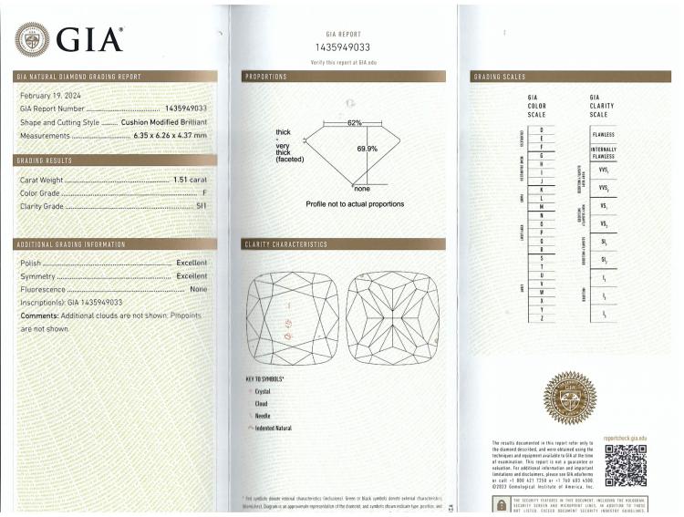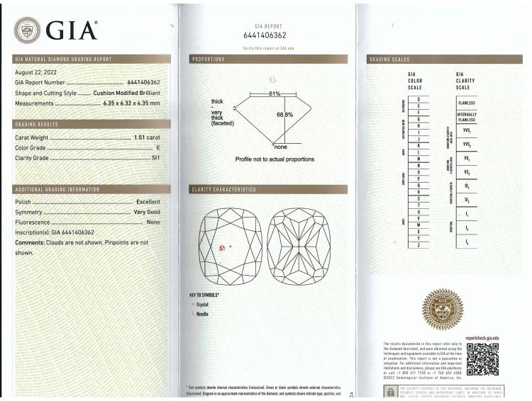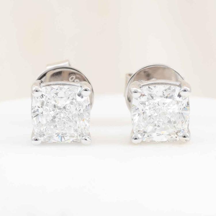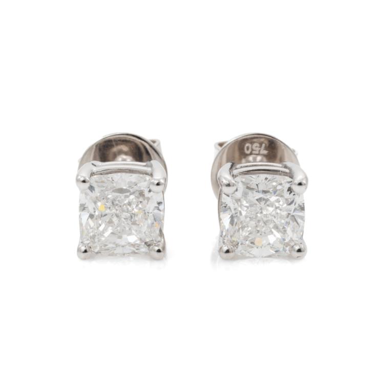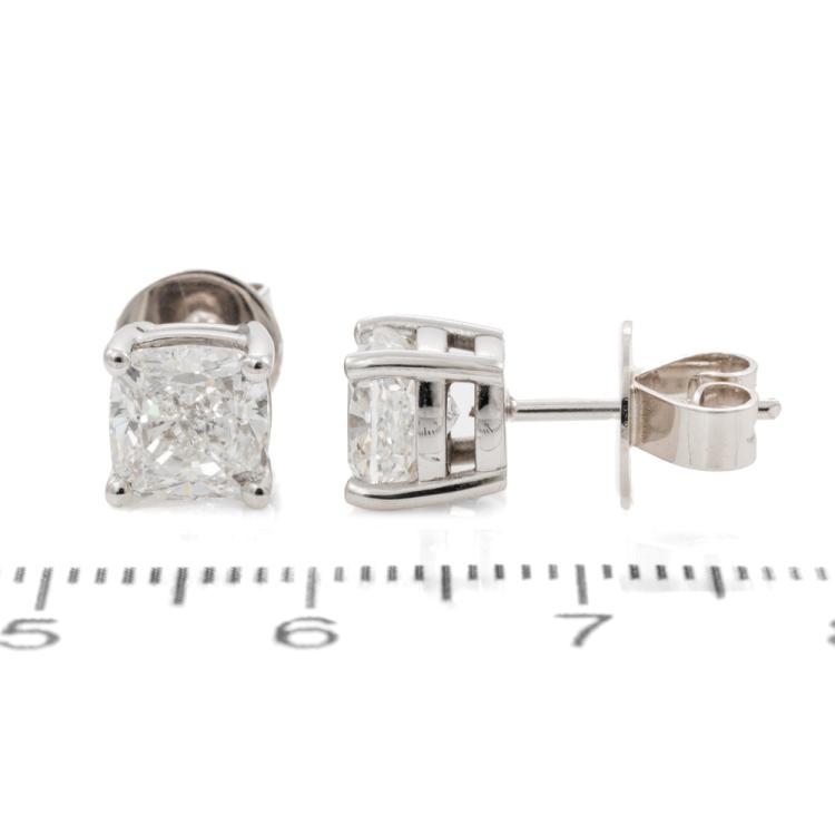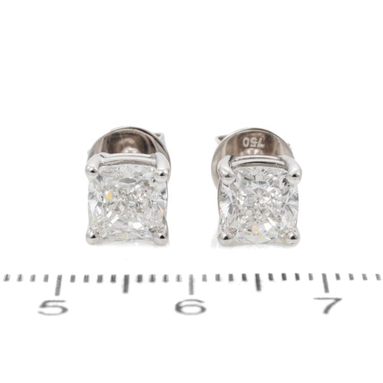 Diamond stud earring with cushion cut Natural Diamonds totalling 3.02ct (with GIA Reports graded as E SI1 #6441406362 & F SI1 #1435949033). 18ct white gold. Weight: 4.2g. (New)