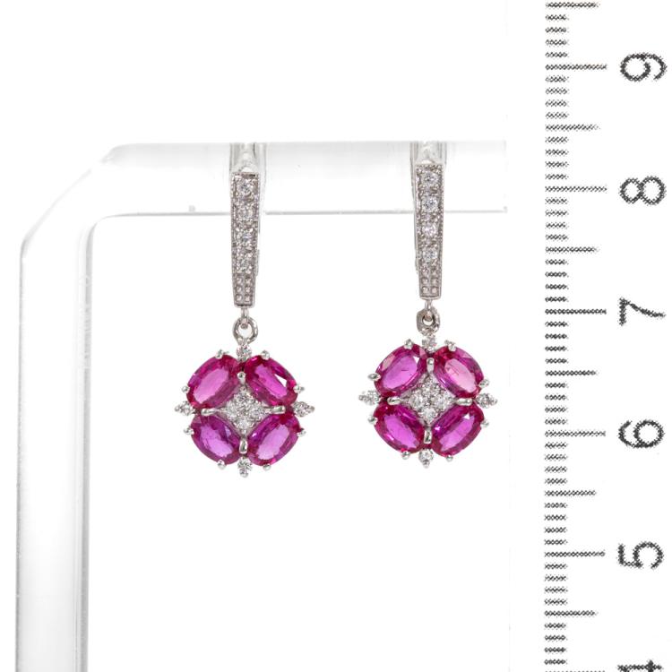 Ruby and Diamond earrings with 8 oval shape Natural Burmese Rubies totalling 3.20ct and round Natural Diamonds totalling 0.22ct. 18ct white gold. Weight: 5.0g. With GSL Description #AA69006/3. (Pre-owned)
