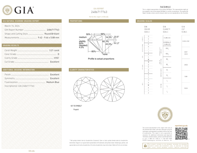 A loose round brilliant cut Natural Diamond of 3.21ct (with GIA report graded as D VVS1 #2486717763). (New)
