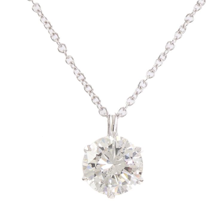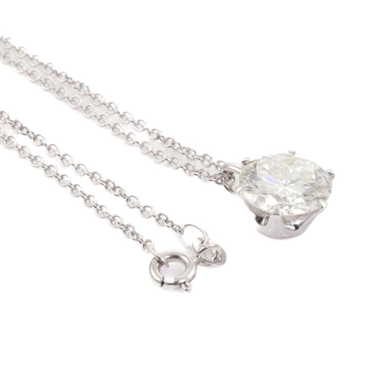 Diamond solitaire pendant with a round brilliant cut Diamond of 3.22ct (With GSL Report graded as H P1 # AA69864/1). Platinum-900, with 18ct white gold 45.5cm chain. Weight: 5.0g. (Pre-owned)