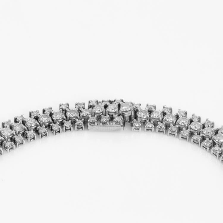 Diamond bracelet with round natural Diamonds totalling 4.28ct (Estimated grading: G-H SI). Platinum 900. Length: 18.5cm. Weight: 19.0g. With Valuation Certificate #418813. (Pre-owned)
