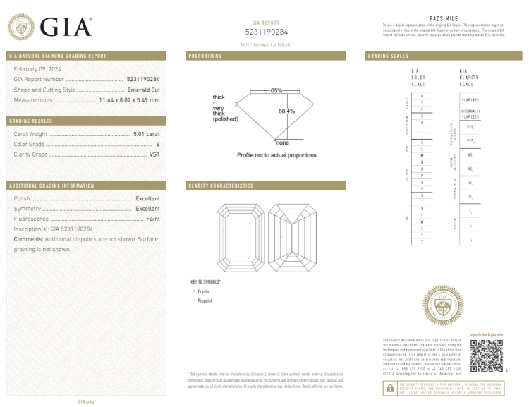 A loose emerald cut Natural Diamond of 5.01ct (with GIA report graded as E VS1 #5231190284). (New)
