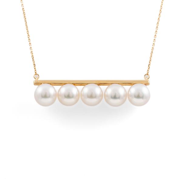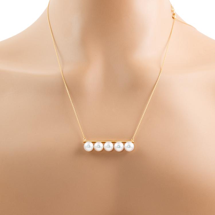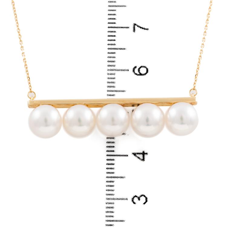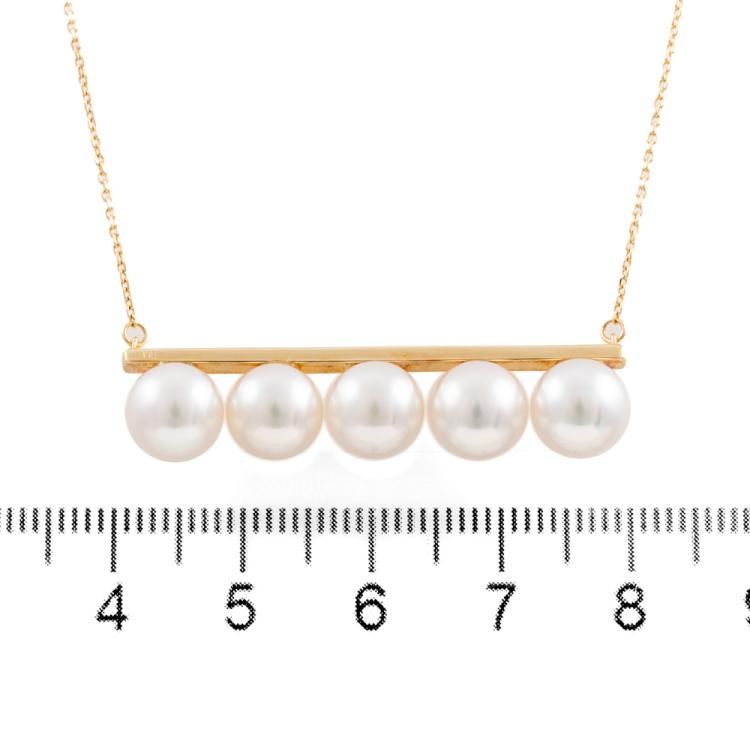 Pearl pendant with 5 Akoya Pearls of 7.5mm - 7.7mm. 18ct yellow gold attached with 18ct yellow gold adjustable chain. Maximum length: 73cm. Weight: 7.0g. (Pre-owned)