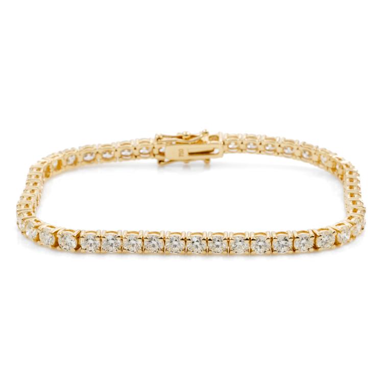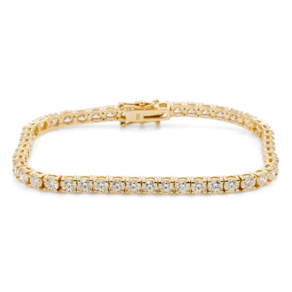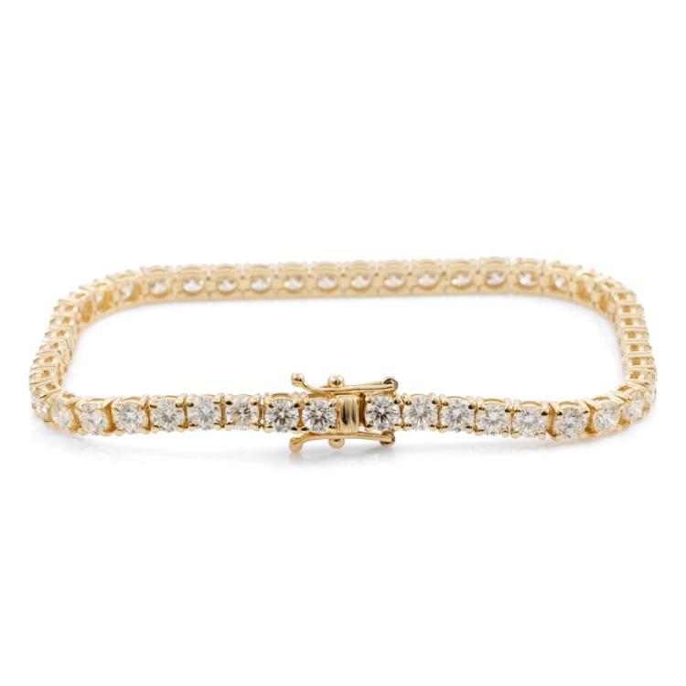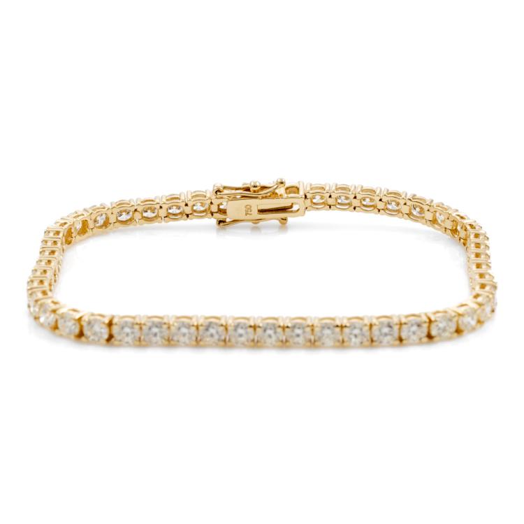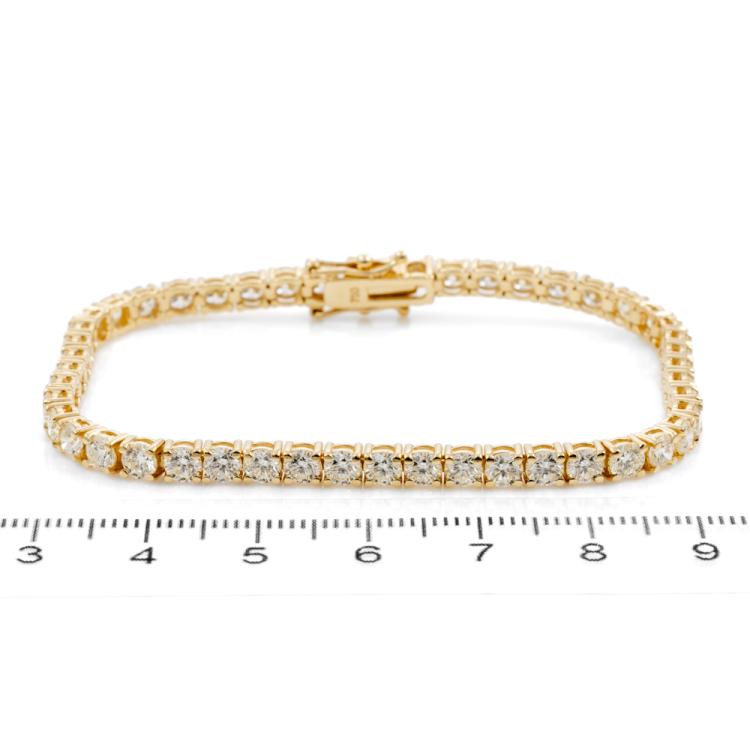 Diamond tennis bracelet with 48 round brilliant cut Natural Diamonds totalling 7.89ct (Estimated grading: J-K VS-SI). 18ct yellow gold. length: 18cm. Weight: 12.5g. With Valuation Certificate #418450. (New)