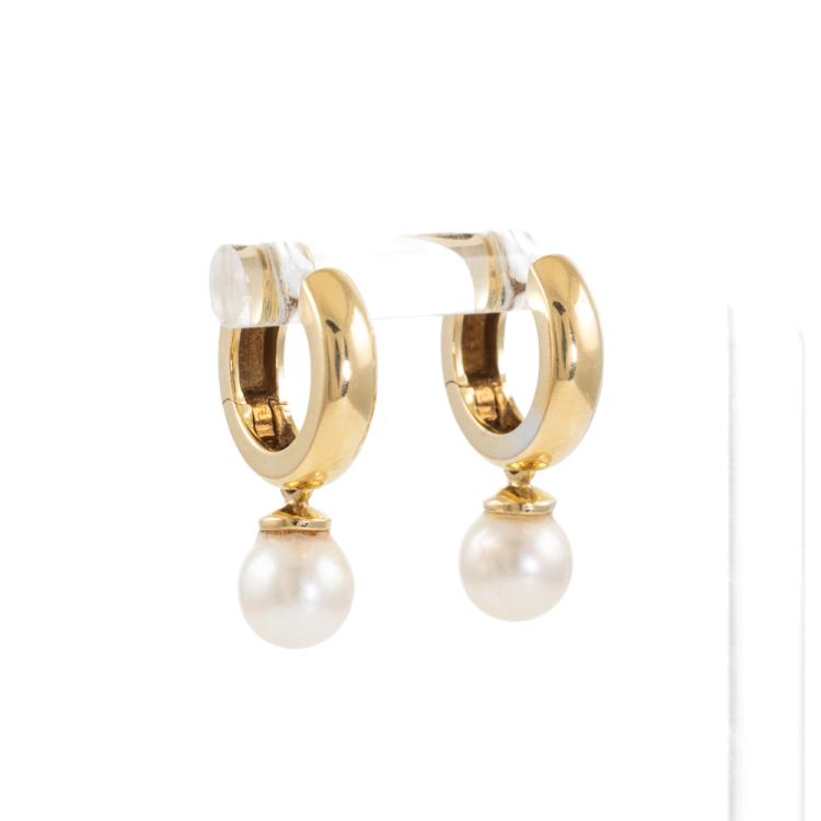 Pearl drop huggie earrings with 2 cultured Pearls of 7mm. 18ct yellow gold. Weight: 5.8g. (Pre-owned)
