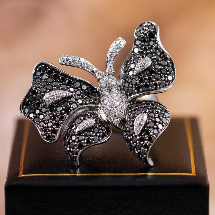 Black & White Diamond Butterfly Ring