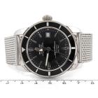Breitling Superocean Heritage stainless steel automatic mens watch. Black dial, date, case diameter: 42mm, wrist size: 17.cm, Swiss made. Ref# A17321. With Breitling stainless steel bracelet and clasp. With Certificate of Authenticity. 3 month FSA warranty (Pre-owned)