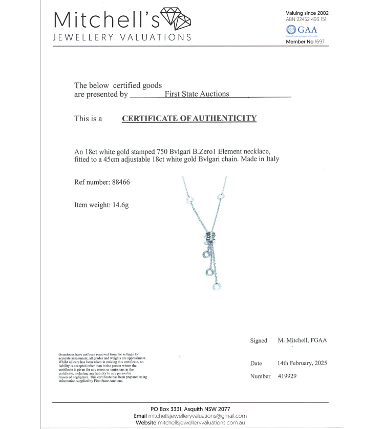 Bvlgari B.Zero1 Element Necklace. 18ct white gold with attached 18ct white gold Bvlgari chain. Adjustable max length: 45cm. Made in Italy. Weight: 14.6g. With Certificate #419929. (Pre-owned)