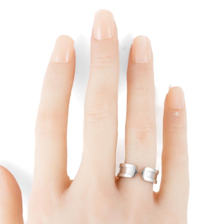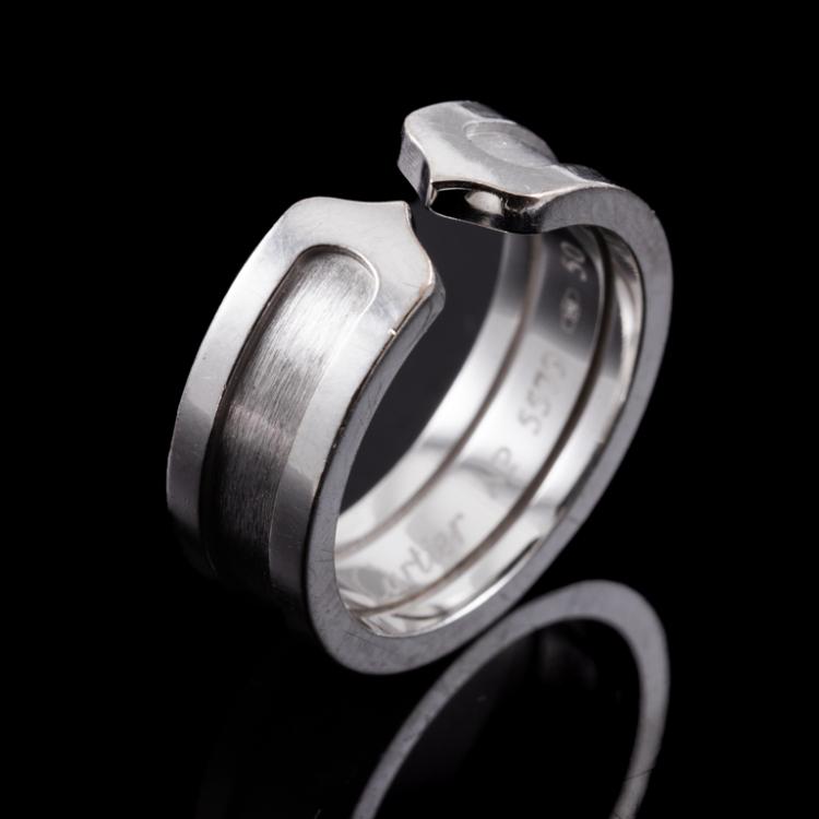 Cartier 2C ring. 18ct white gold. Cartier stamped size 50, K - ring resizing is not recommended. Band width: 10.0mm. Weight: 7.7g. With Cartier box. (Pre-owned)