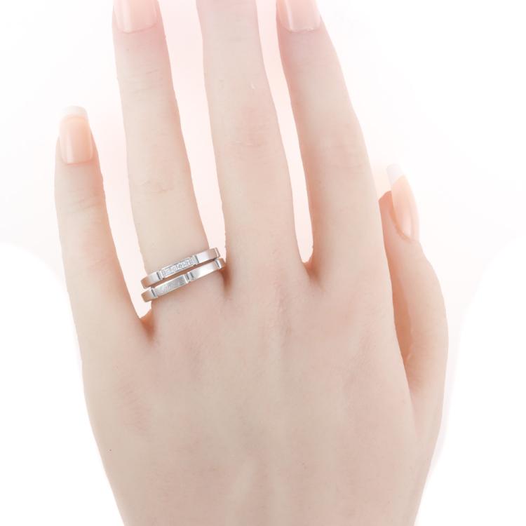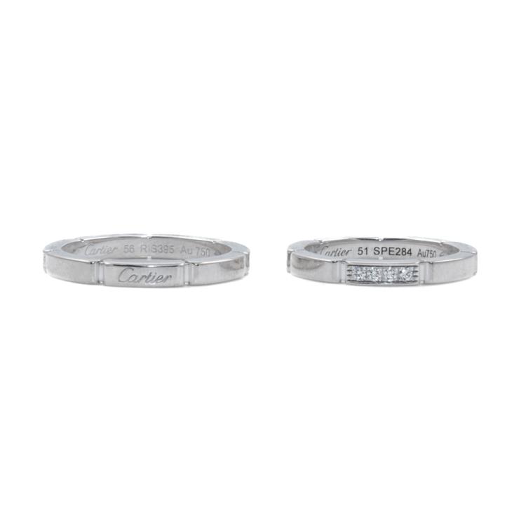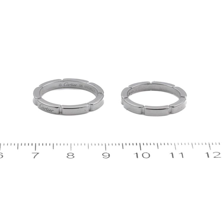 Cartier Maillon Panthere two piece ring set. 1) 18ct white gold. Cartier stamped size 51 set with 4 round natural diamonds totalling 0.05ct, 2) 18ct white gold, ring size 56, - K ring resizing is not recommended. Combined weight: 9g. Both with Cartier Certificates dated 22.02.23 and Cartier boxes (Pre-owned)