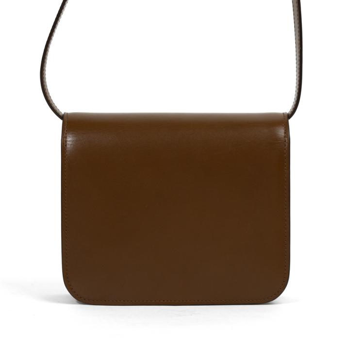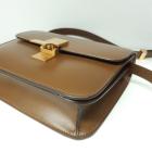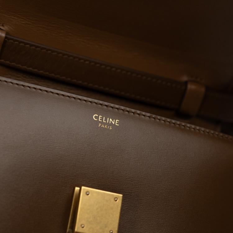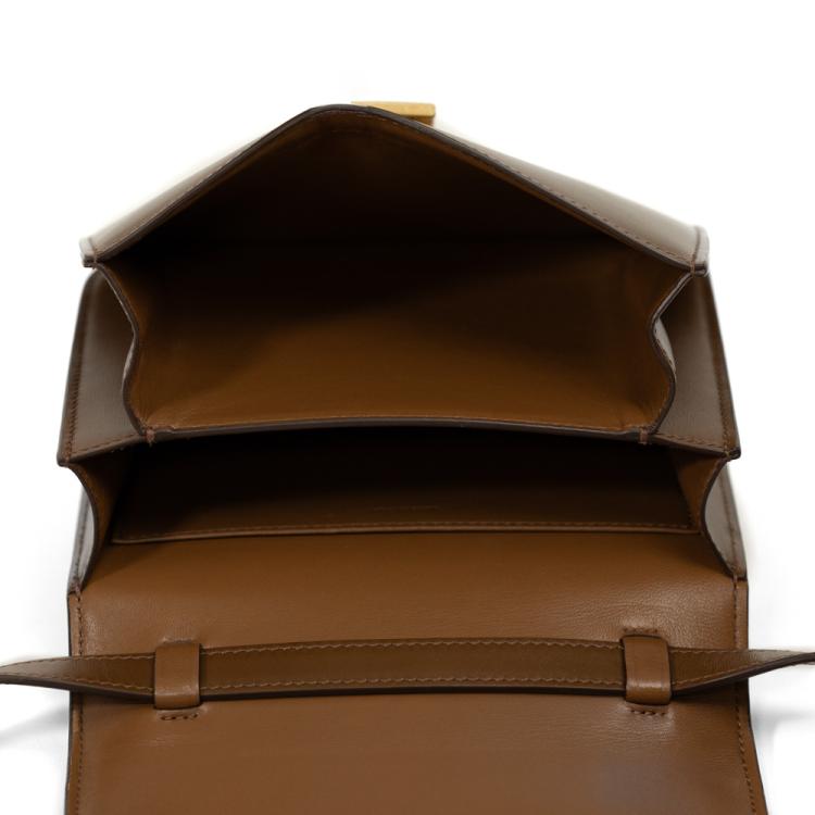 Celine teen classic box bag in fine smooth box calfskin leather in brown. Featuring an removable and adjustable leather shoulder strap and gold-toned hardware. The frontal gold press lock on flap opens to matching brown leather interior with two main compartments, one with a patch pocket. Approximate dimensions: 18.5cm(L) x 16cm(H) x 5.5cm(D), shoulder drop 39-50cm. Accompanied by a Celine dustbag, box, and purchase receipt from boutique (Dated 10/01/2020). (Pre-owned)