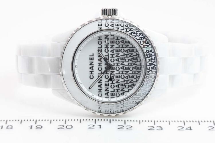 Chanel J12 Wanted de Chanel Limited Edition ceramic quartz ladies watch. White dial, case diameter: 33mm, wrist size: 16.5cm, Swiss made. Ref# H7419. With Chanel ceramic bracelet and clasp. With Certificate of Authenticity, Chanel International Warranty Card dated 25/2/2023 and Chanel box. Balance of 5 year Chanel manufacturer warranty applies. (Pre-owned)