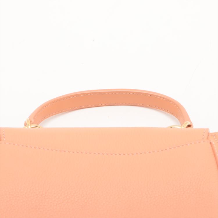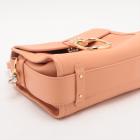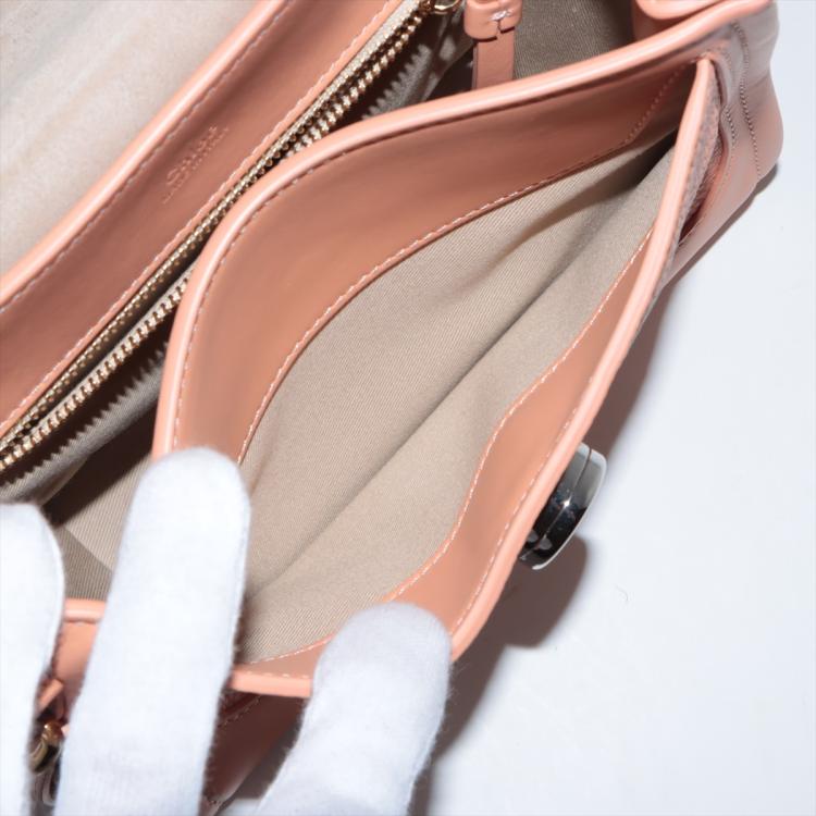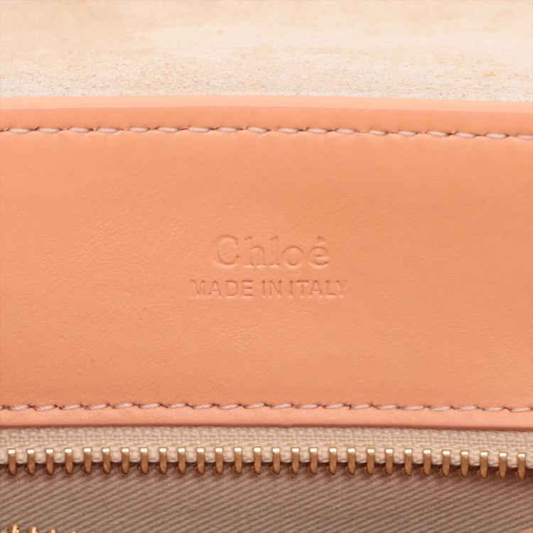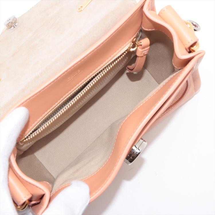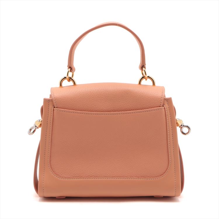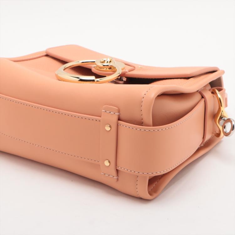 Chloe mini Tess Day bag in peach calfskin leather. Featuring gold & silver toned hardware, single flat top handle, fold over top with push-down button closure and a decorative ring. This opens to a front pocket and fabric lining interior with a zipped pocket. Approximate dimensions: 22cm(L) x 17.5cm(H) x 9.5cm(D), 10.5cm handle drop and 56cm detachable shoulder strap height. Accompanied by Chloe card and dust bag. With Entrupy Certificate of Authenticity. (Pre-owned)