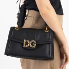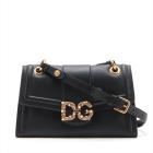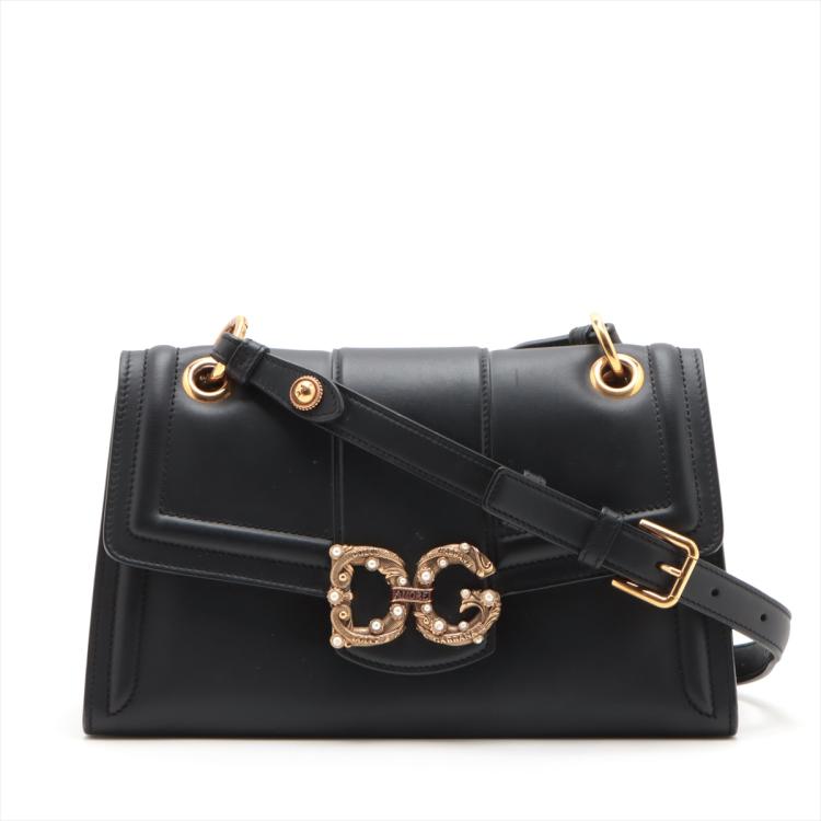 Dolce & Gabbana Amore shoulder bag in black smooth leather. Featuring a facing push-up button closure embellished with a golden D&G logo with pearl details, gold tone hardware. The frontal flap opens to a black microfibre lining interior with 2 compartments. Approximate dimensions: 27cm(L) x 16.5cm(H) x 11cm(D), 43cm adjustable shoulder strap height. With Entrupy Certificate of Authenticity. (Pre-owned)