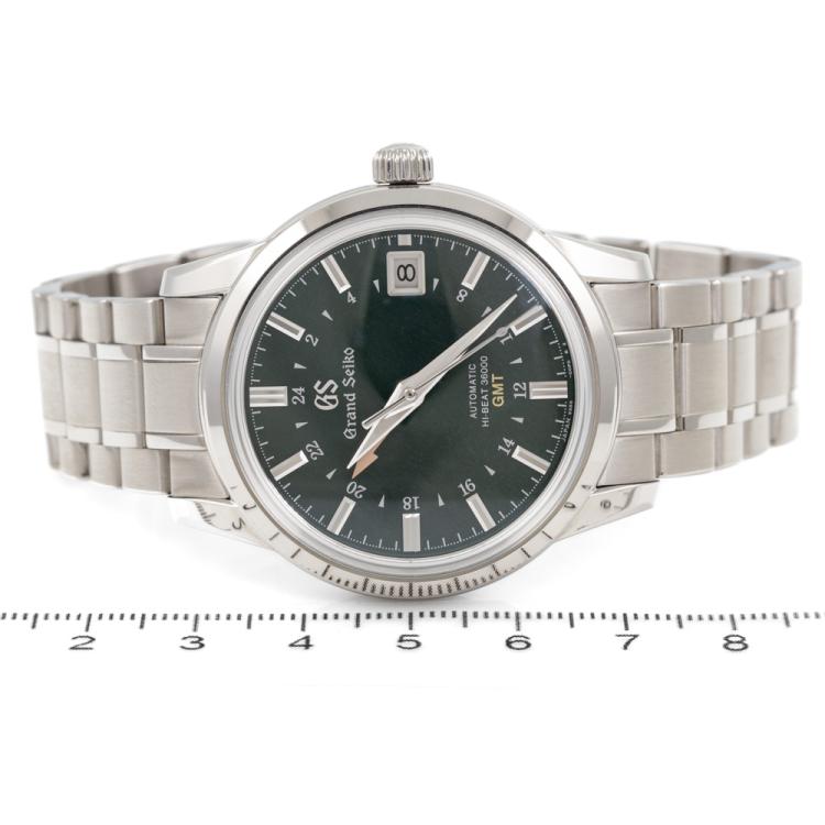 Grand Seiko Elegance Collection stainless steel automatic mens watch. Green dial, date, case diameter: 39.5mm, wrist size: 19cm, Made in Japan. Ref# SBGJ251. With Grand Seiko stainless steel bracelet and clasp. With FSA Certificate of Authenticity and Grand Seiko box. 3 month FSA warranty (As new, Note: minor scuff on case and bracelet due to being display stock)
