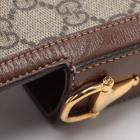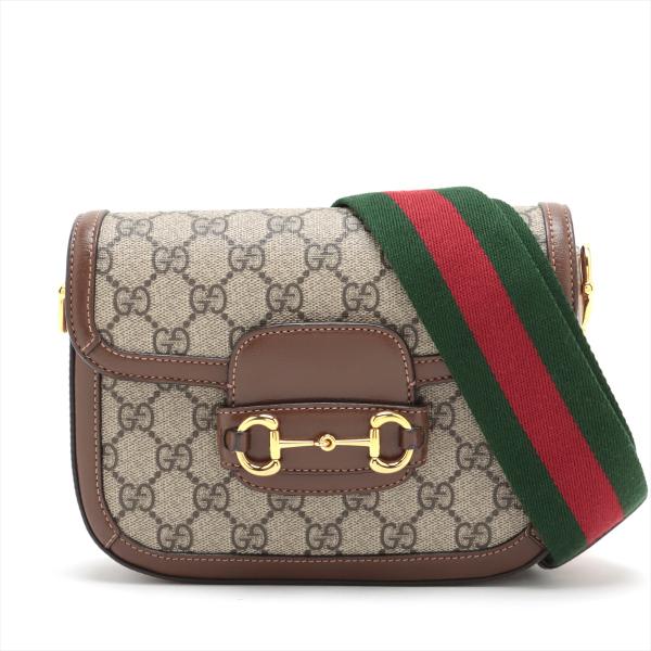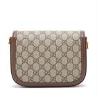 Gucci Horsebit 1955 shoulder bag in GG Supreme canvas, with brown leather trims. Featuring gold-toned hardware, Horsebit detail at the front, half Horsebit detail at sides. The flap closure opens to a beige textile interior. Approximate dimensions: 26cm(L) x 18cm(H) x 10cm(D), adjustable strap drop 28-50cm. Accompanied by fabric and leather shoulder straps, Gucci dustbag and box. With Entrupy Certificate of Authenticity. (Pre-owned)
