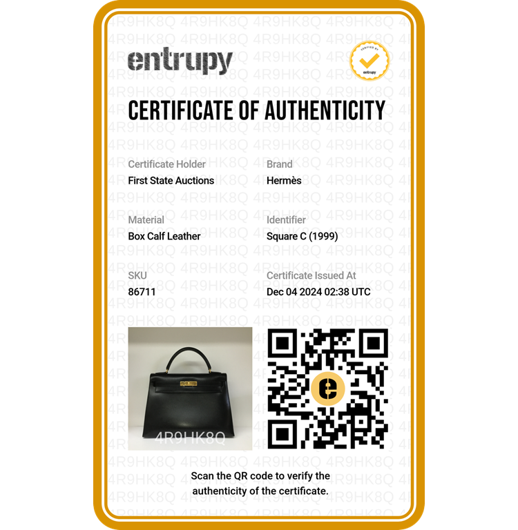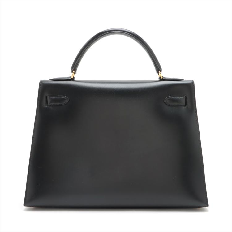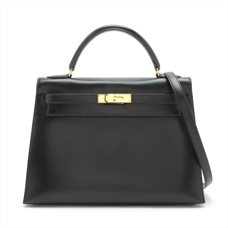 Hermes Sellier Kelly 32 bag in black box calfskin with gold-tone hardware (Square C, 1999). Featuring leather top handle, frontal flap and straps with turn lock closure. The flap opens to a matte leather interior with zipped and flat pockets. Approximate dimensions: 32cm(Base-L) x 22cm(H) x 12cm(D), 9.5cm handle height and 44cm detachable strap drop. Accompanied by Hermes keys, padlock, clochette, dust bags and box. With Entrupy Certificate of Authenticity. (Pre-owned)