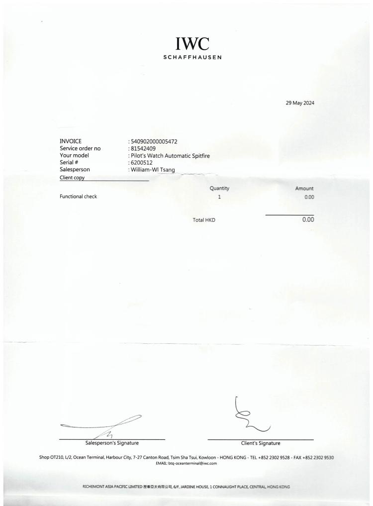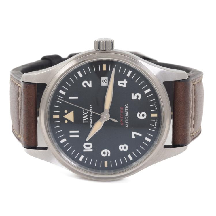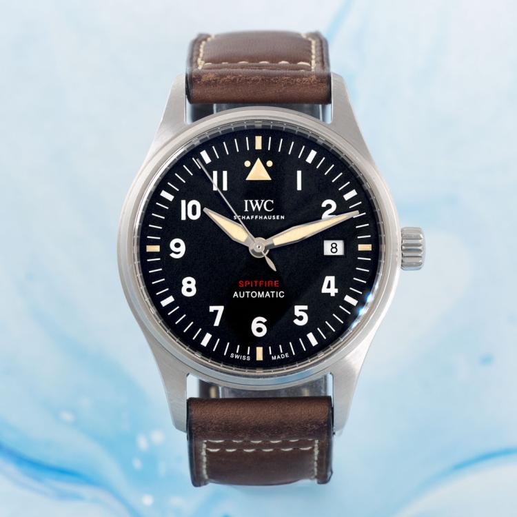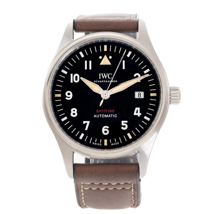 IWC Schaffhausen Pilot Spitfire stainless steel automatic mens watch. Black dial, date, case diameter: 39mm, strap length: 21cm, Swiss made. Ref# IW326803. With IWC Schaffhausen brown leather strap and buckle. With Certificate of Authenticity IWC Schaffhausen Service Invoice dated 29/05/2024 and IWC Schaffhausen case. 3 month FSA warranty. (Pre-owned)