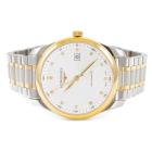 Longines Master Collection 18ct yellow gold and stainless steel automatic mens watch. Silver dial, Diamond indicators, date, case diameter: 40mm, wrist size: 19.5cm, Swiss made. Ref# L2.793.5.97.7. With Longines two-tone bracelet and clasp. With FSA Certificate of Authenticity, Longines Diamond Certificate card and Longines box. 3 month FSA warranty (As new, Note: minor scratches on case and bracelet due to being display stock)