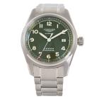 Longines Spirit stainless steel automatic mens watch. Green dial, date, case diameter: 40mm, wrist size: 19.5cm, Swiss made. Ref# L3.810.4.03.6. With Longines stainless steel bracelet and clasp. With FSA Certificate of Authenticity, Longines COSC Certified Chronometer card and Longines box. 3 month FSA warranty (As new, Note: minor scuff on back case due to being display stock)