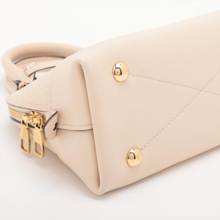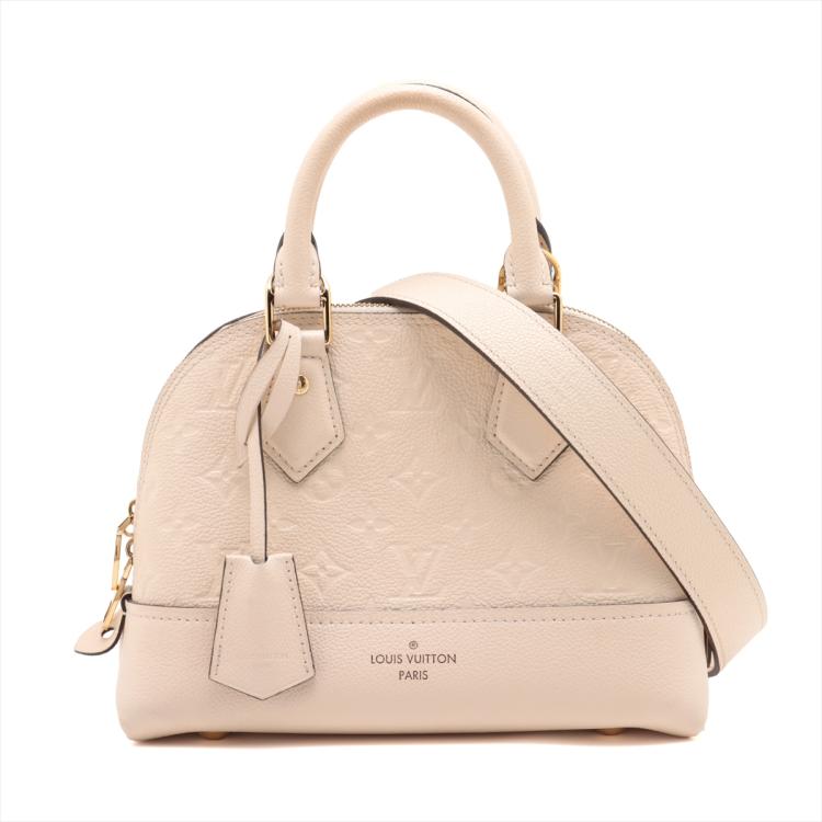 Louis Vuitton Neo Alma BB in crème Empreinte leather. Featuring gold-toned hardware, rolled top leather handles, and detachable shoulder strap. The double zipper closure opens to a brown microfibre lining interior with a patch pocket. Approximate dimensions: 25cm(Base-L) x 18cm(H) x 11cm(D), handle drop 8.5cm, strap drop 58cm. Accompanied by clochette with keys, padlock, LV dustbags and box. With Entrupy Certificate of Authenticity. (Pre-owned)