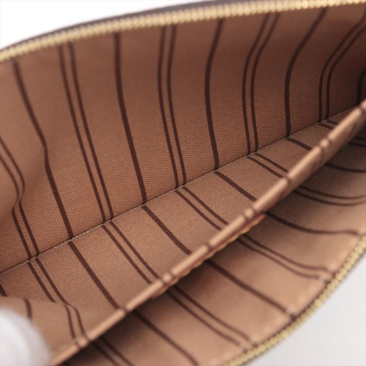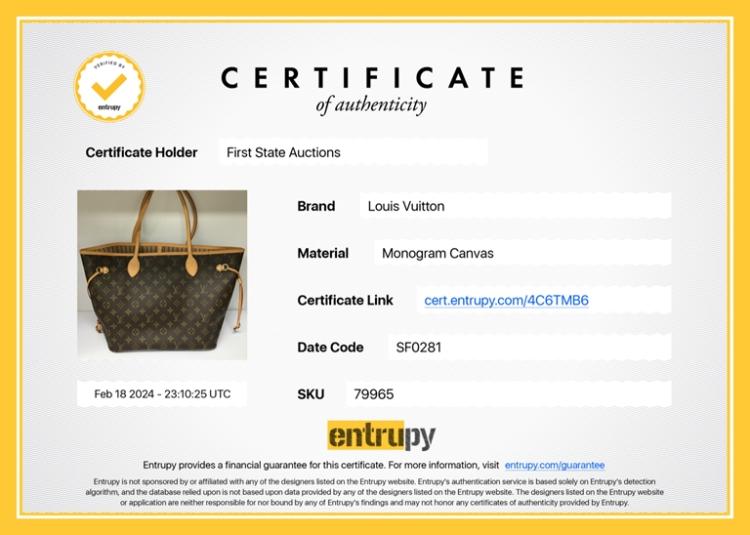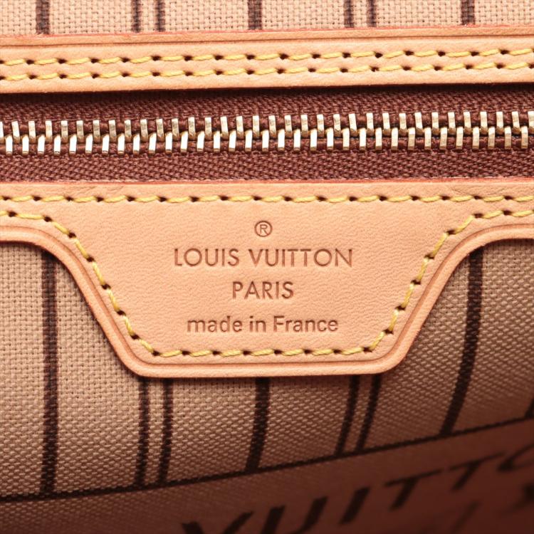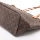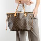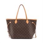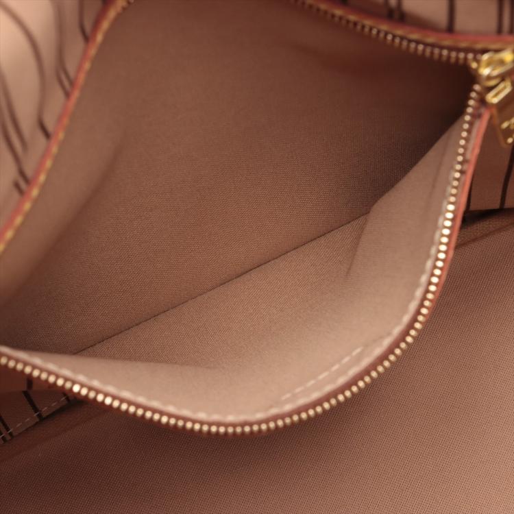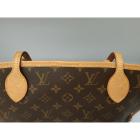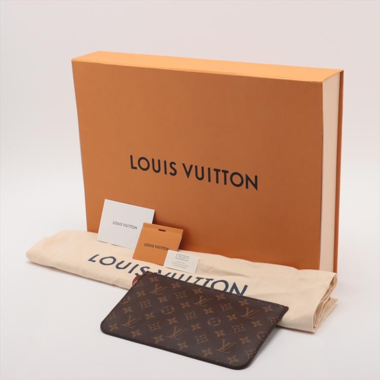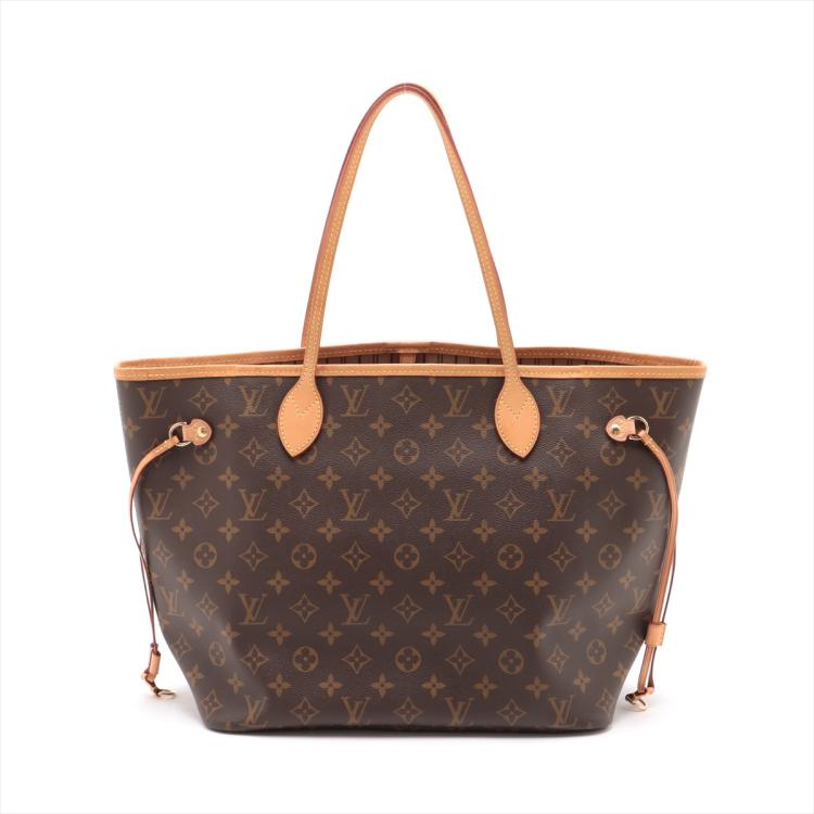 Louis Vuitton Neverfull MM bag in Monogram coated canvas. Featuring cowhide-leather trim and handles, gold tone hardware, 4 side laces for cinching, hook closure. The top opens to a beige colour striped textile interior with a zipped pocket. Approximate dimensions: 32cm(W) x 28cm(H) x 16cm(D), 20.5cm handle drop. Accompanied by an internal pouch (with different date code to the bag), a LV dust bag and box. With Entrupy Certificate of Authenticity. (Pre-owned)
