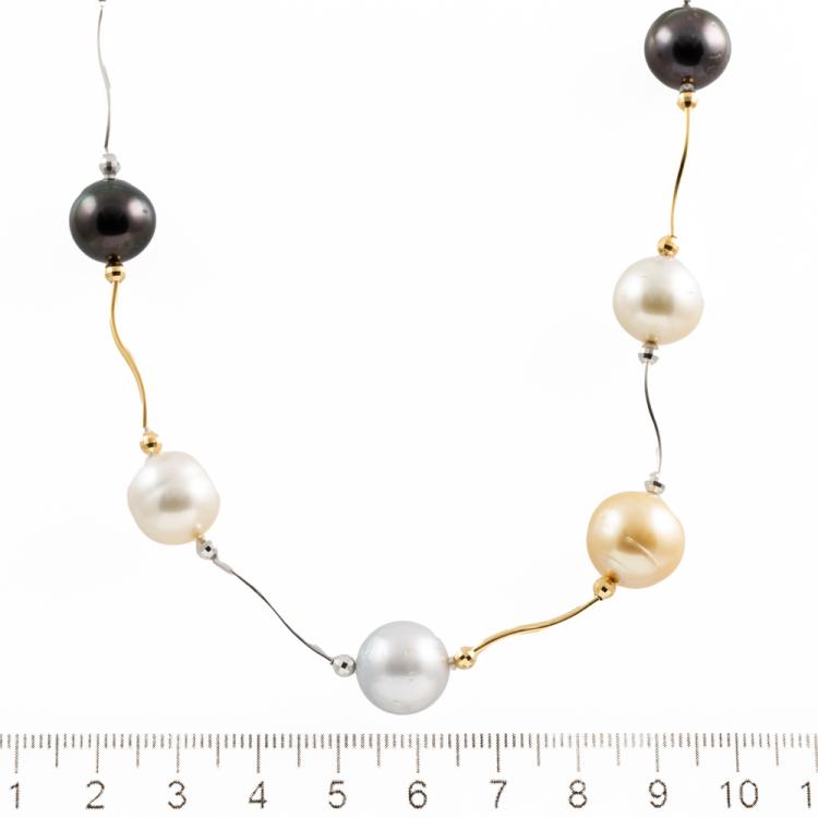 Pearl necklace with off-round White & Golden South Sea Pearls and Tahitian Pearls of 12.6mm - 9.0mm. 18ct yellow and white gold. Length: 80cm. Weight: 40.8g (Pre-owned)
