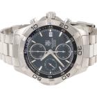 TAG Heuer Aquaracer stainless steel automatic mens watch. Black chronograph dial, date, case diameter: 41mm, wrist size: 15.5cm, Swiss made. Ref# CAF2110. With TAG Heuer stainless steel bracelet and clasp. With Certificate of Authenticity. 3 month FSA warranty. (Pre-owned)
